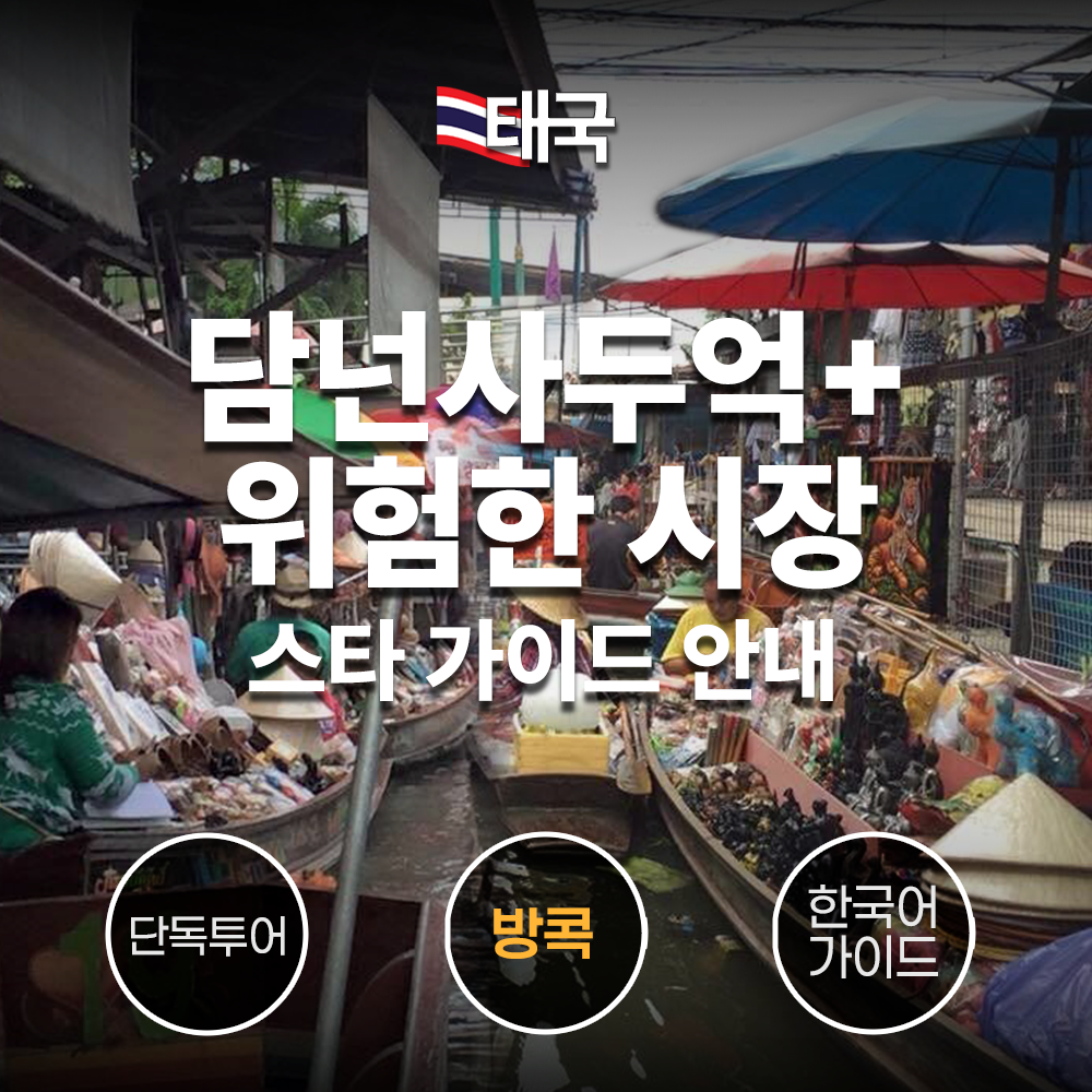 한국어 가능한 가이드와 전용차량으로 한국인 대상으로 담넌사두억/위험한 시장/왕궁/에머랄드사원/새벽사원/차오프라야 강변을 하루에 투어 하는 상품입니다