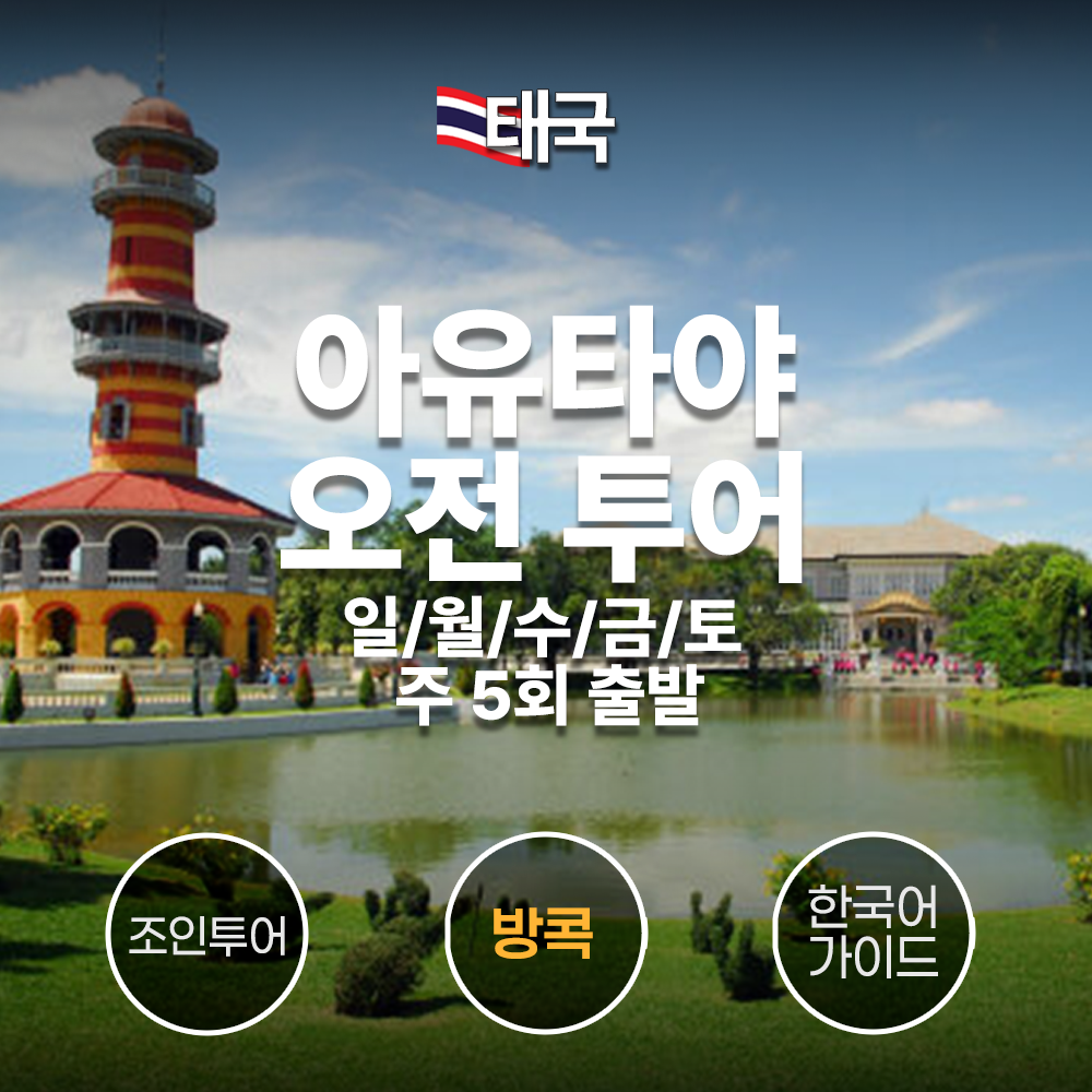 - 한국어 가능한 가이드가 한국인 대상으로 아유타야 유적지와 방파인 여름별장을 오전에 안내해 드리는 상품입니다 - 일/월/수/금/토에 출발하는 상품입니다